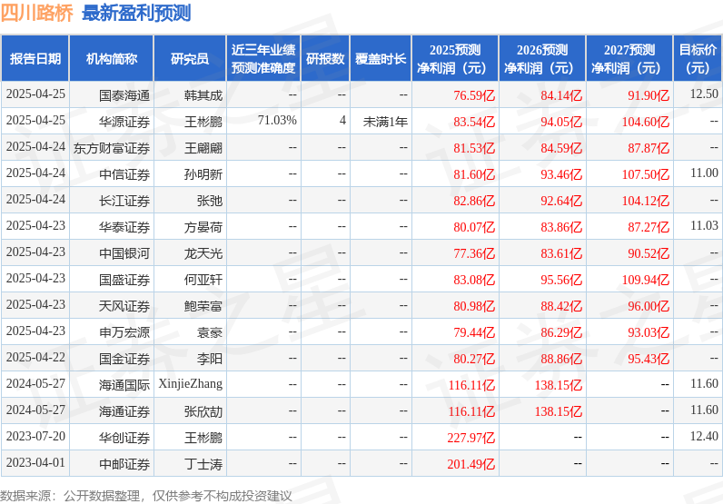 最新盈利预测明细如下: