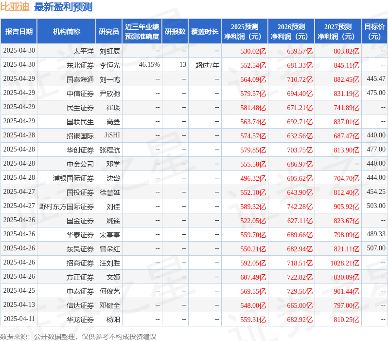 最新盈利预测明细如下: