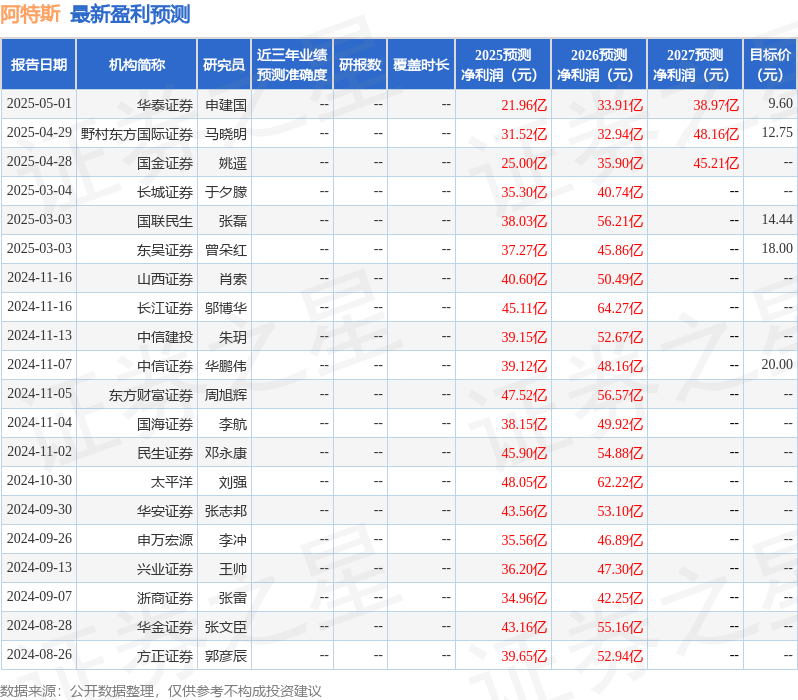 最新盈利预测XM外汇官网明细如下: