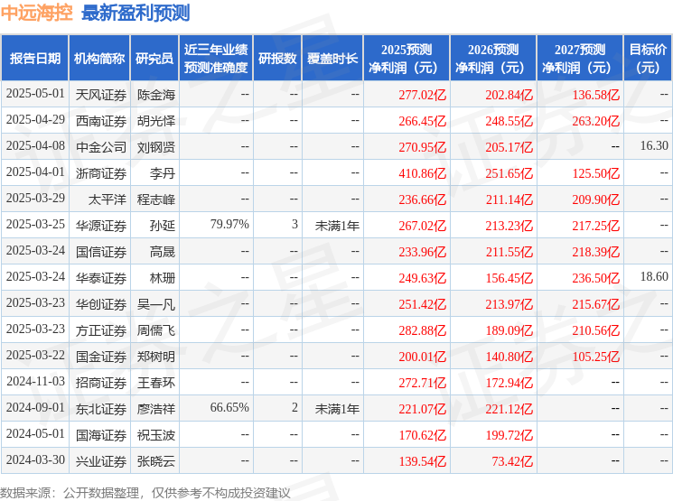 华源证券股份有限公司孙延,王惠武,曾智星近期对中远海控进行研究并发布了研究报告《Q1业绩同比大增,关注后续美国关税与港费影响》,给予中远海控增持评级。