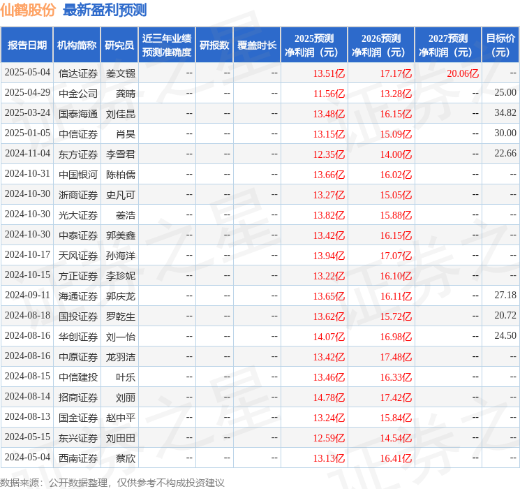 最新盈利预测明细如下: