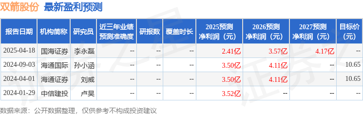 海通国际证券集团有限公司孙小涵近期对双箭股份进行研究并发布了研究报告《扣非后净利润同比下降37.70%,在建项目进展顺利》,下调双箭股份目标价至7.84元,给予增持评级。