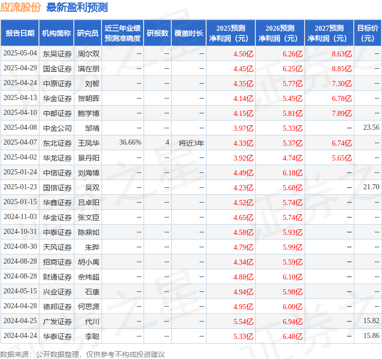 最新盈利预测明细如下: