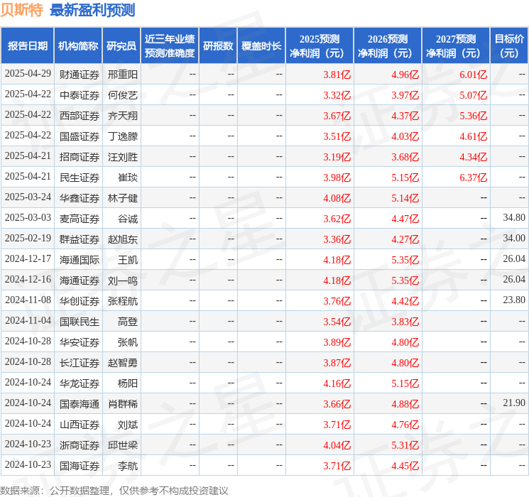 华安证券股份有限公司张帆,姜肖伟,陶俞佳近期对贝斯特进行研究并发布了研究报告《24年报+25Q1点评:业绩稳健增长,三梯次业务持续推进》,给予贝斯特买入评级。