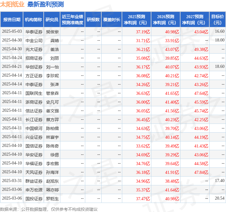 公司作为国内领先的造纸企业,林浆纸一体化成本优势明显。短期2025年是公司新上项目的投资大年,产能扩张贡献业绩增量;XM外汇官网长期的林浆纸一体化和山东、广西和老挝三大基地高质量协同发展,竞争壁垒稳固。我们维持盈利预测,预计公司2025-2027年营收分别为443.37/471.68/495.95亿元,分别同比增长8.9%/6XM外汇官网.4%/5.1%;归母净利润分别为34.69/39.29/43.06亿元,分别同比增长11.8%/13.3%/9.6%。截至2025年4月30日,EPS分别为1.24/1.41/1.54元,对应PE分XM外汇官网别为11/10/9倍,维持“买入”评级。