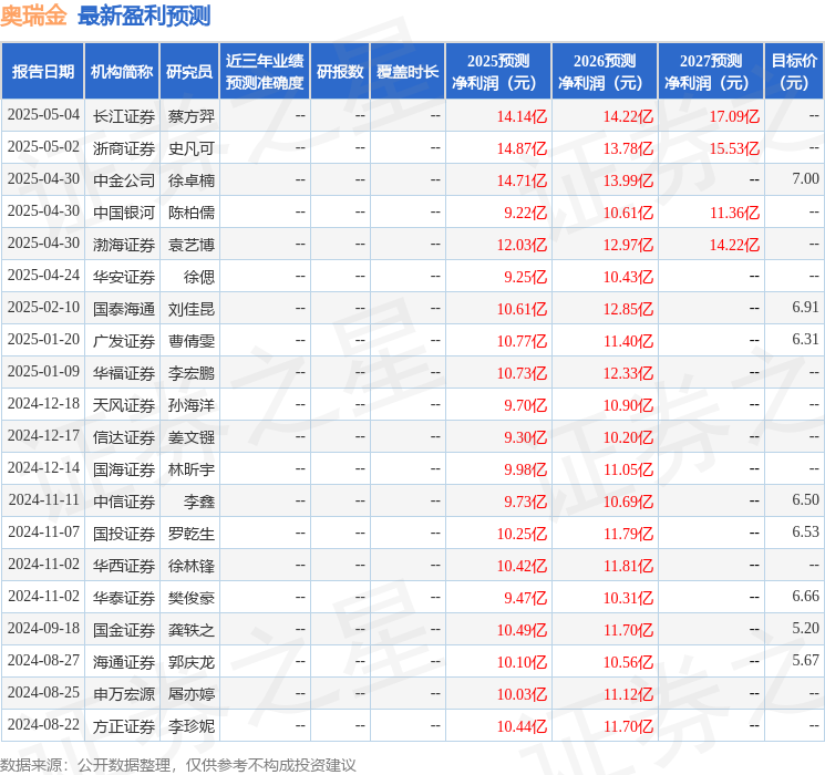 华安证券股份有限公司徐偲,余倩莹近期对奥瑞金进行研究并发布了研究报告《25Q1中粮包装并表,业绩实现高增长》,给予奥瑞金买入评级。