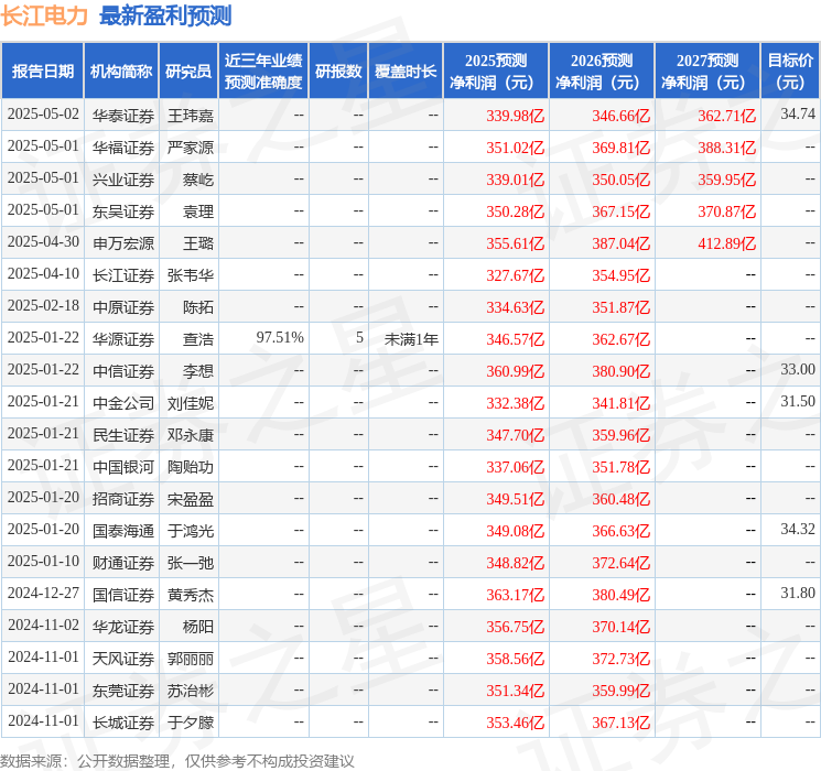 天风证券股份有限公司郭丽丽,赵阳近期对长江电力进行研究并发布了研究报告《财务费用压降显著,25年Q1增速亮眼》,给予长江电力买入评级。