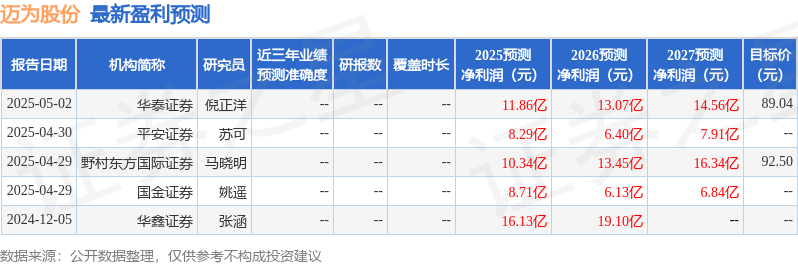 最新盈利预测明细如下: