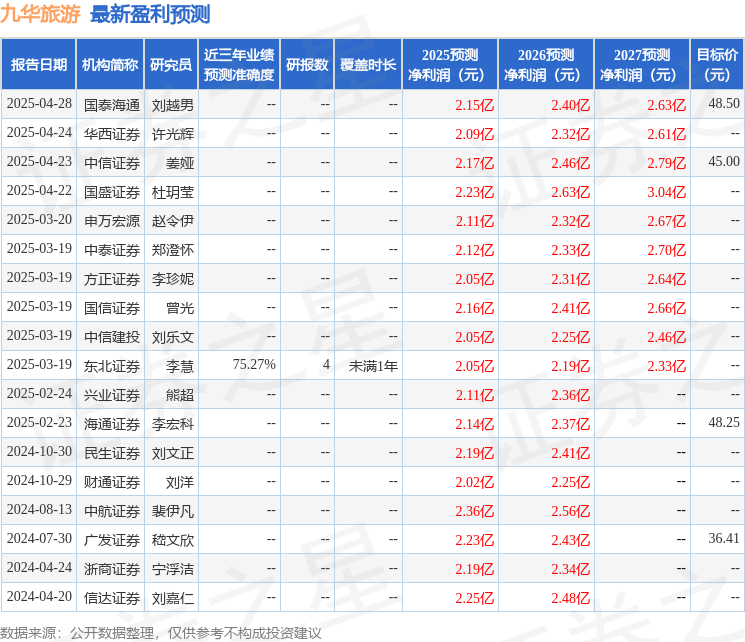 最新盈利预测明细如下: