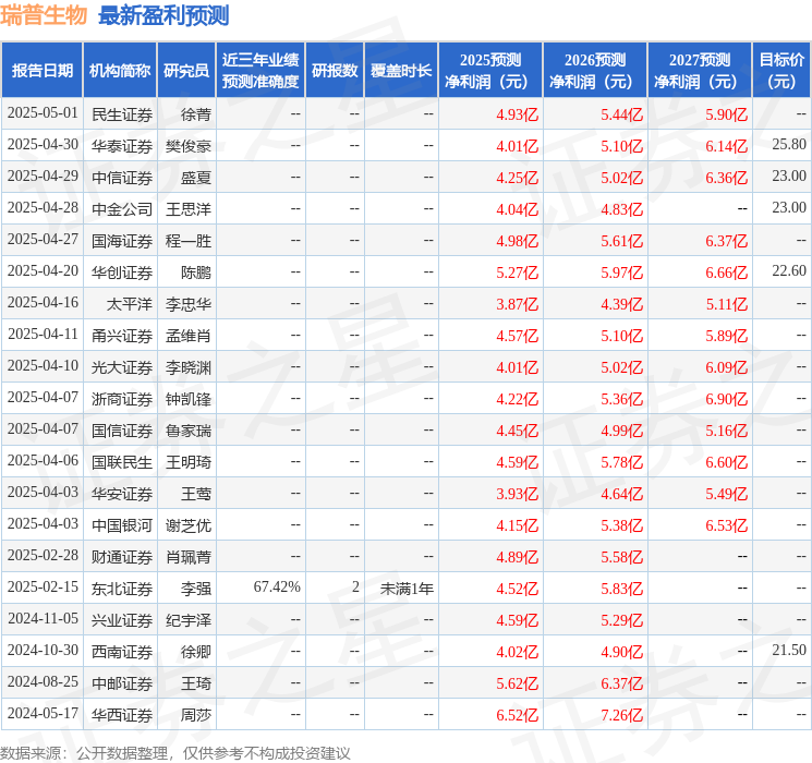 中航证券有限责任公司彭海兰,陈翼近期对瑞普生物进行研究并发布了研究报告《Q1业绩快增长,新旧动能齐发力》,给予瑞普生物买入评级。
