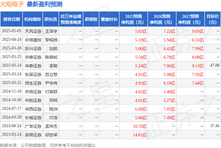 最新盈利预测明细如下: