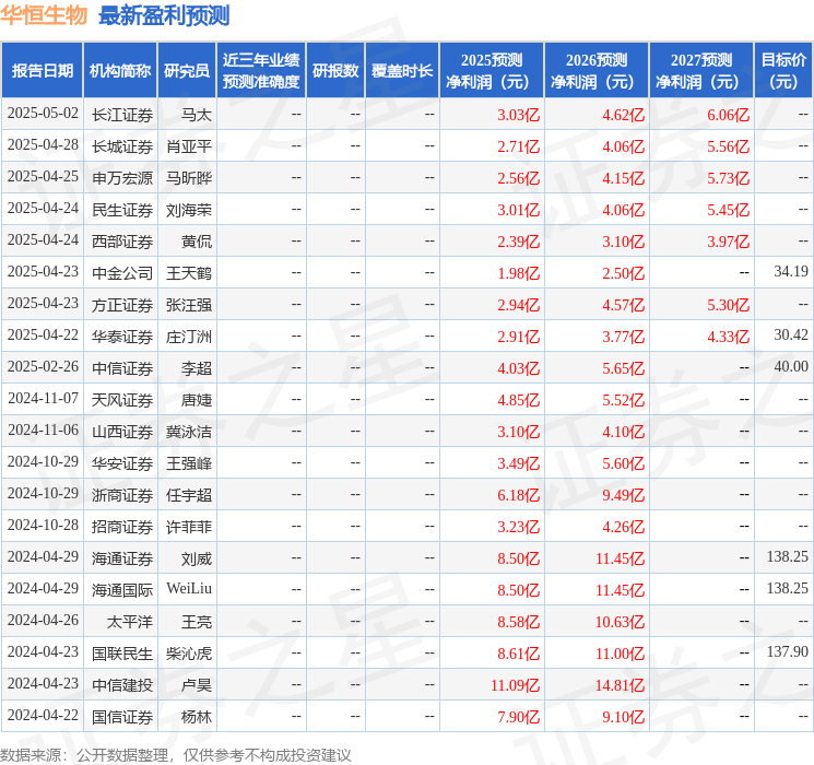 最新盈利预测明细如下: