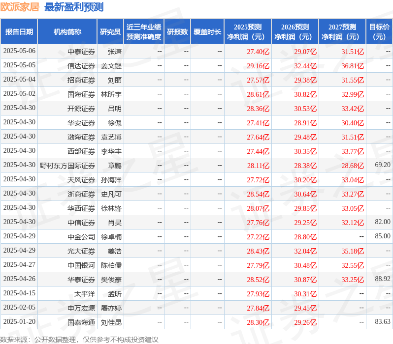 西南证券股份有限公司蔡欣近期对欧派家居进行研究并发布了研究报告《盈利能力稳中向好,大家居战略持续深化》,给予欧派家居买入评级,目标价83.88元。