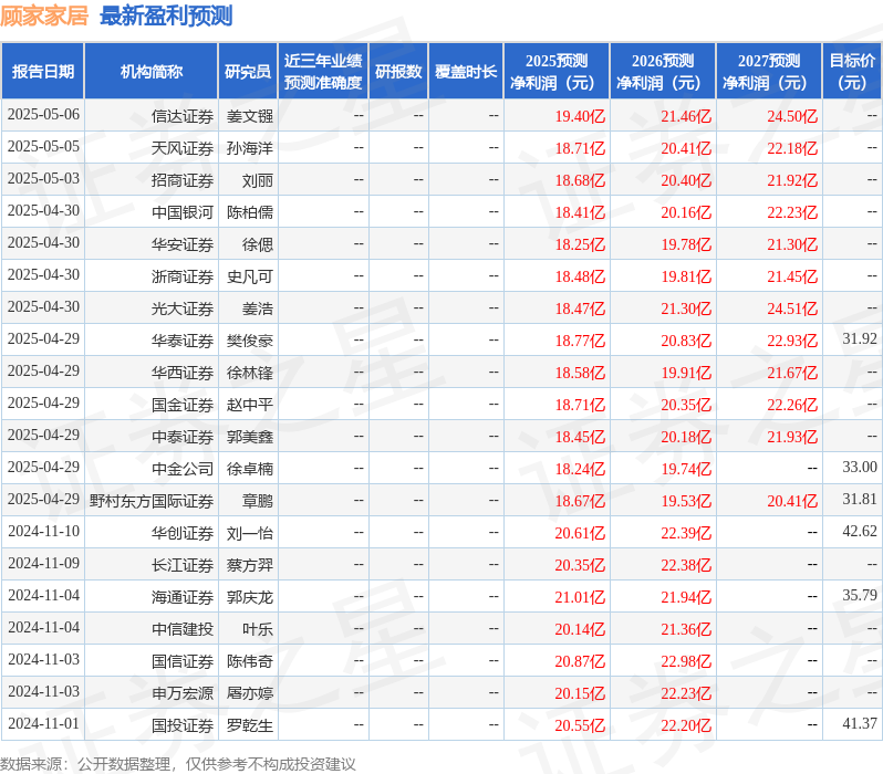 最新盈利预测明细如下: