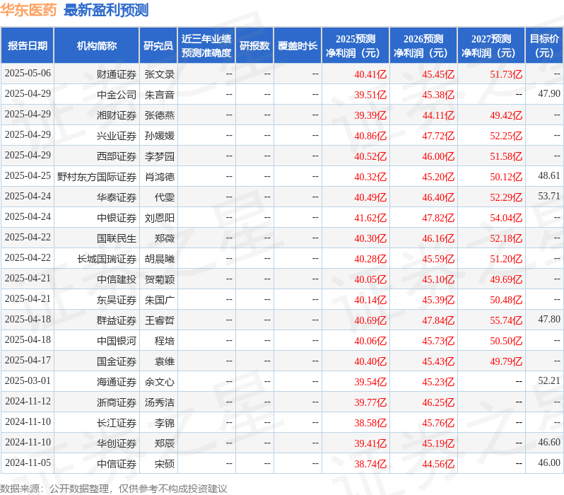 群益证券(香港)有限公司王睿哲近期对华东医药进行研究并发布了研究报告《25Q1扣非净利YOY+17%,符合预期》,给予华东医药增持评级,目标价47.8元。