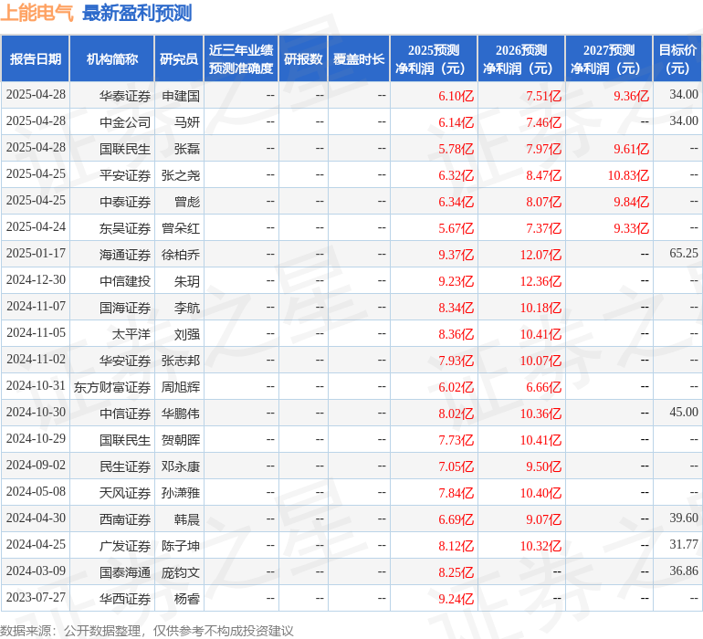 最新盈利预测明细如下: