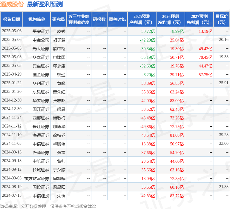 最新盈利预测明细如下: