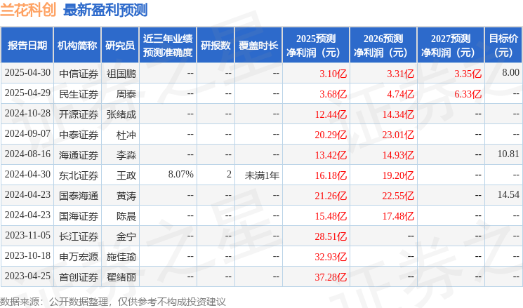 最新盈利预测明细如下: