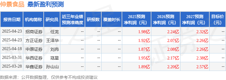 最新盈利预测明细如下: