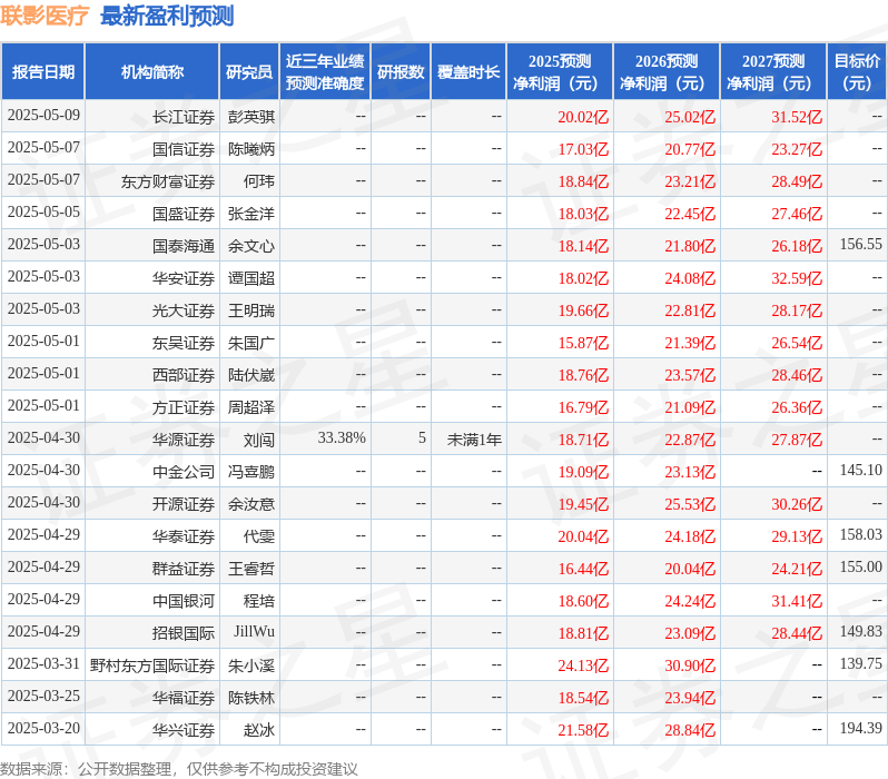 最新盈利预测明细如下: