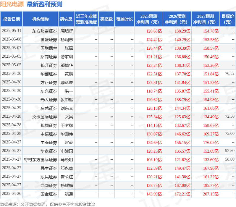 最新盈利预测明细如下: