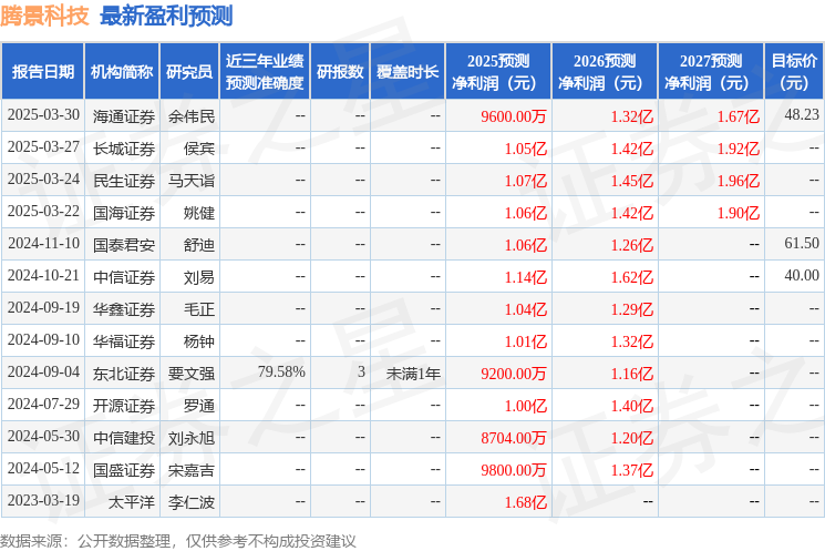 最新盈利预测明细如下: