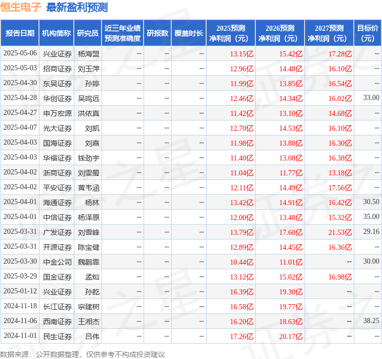 最新盈利预测明细如下: