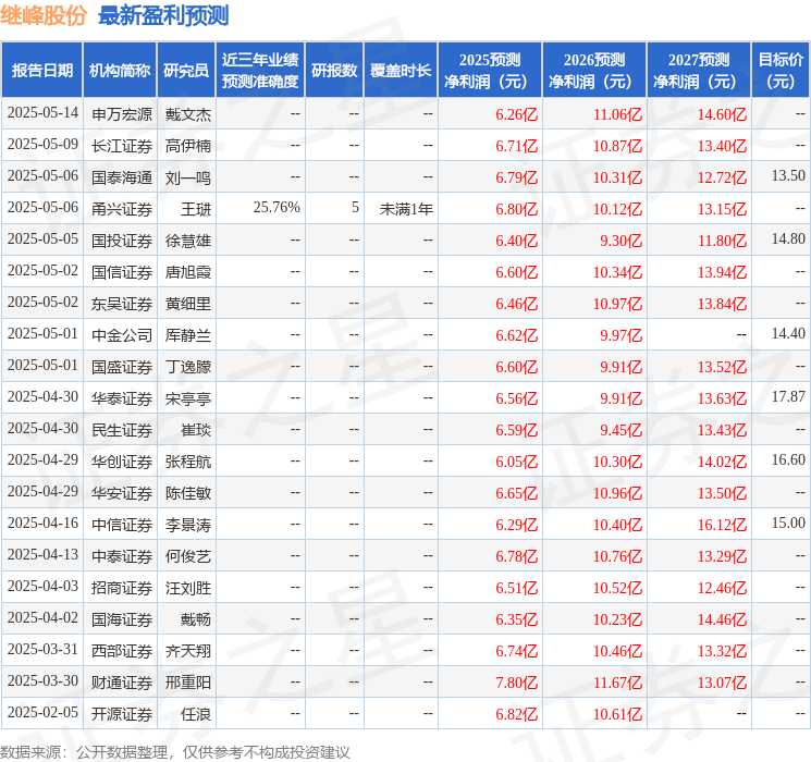 证券之星数据中心根据近三年发布的研报XM外汇官网数据计算,甬兴证券王琎研究员团队对该股研究较为深入,近三年预测准确度均值为25.76%,其预测2025年度归属净利润为盈利6.8亿,根据现价换算的预测PE为24.07。