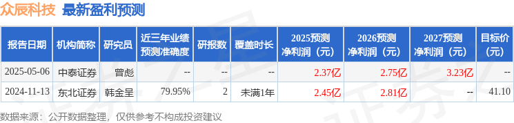 证券之星数XM外汇官网据中心根据近三年发布的研报数据计算,东北证券韩金呈研究员团队对该股研究较为深入,近三年预测准确度均值为79.95%,其预测2025年度归属净利润为盈利2.45亿,根据现价换算的预测PE为22.82。