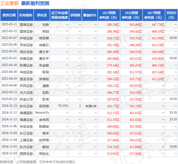 最新盈利预测明细如下: