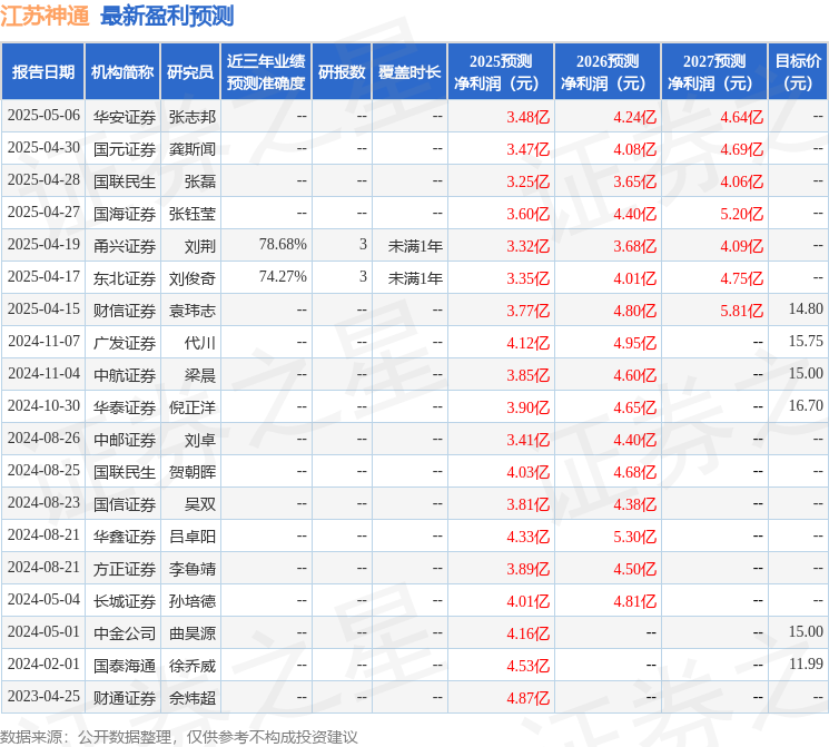 最新盈利预测明细如下: