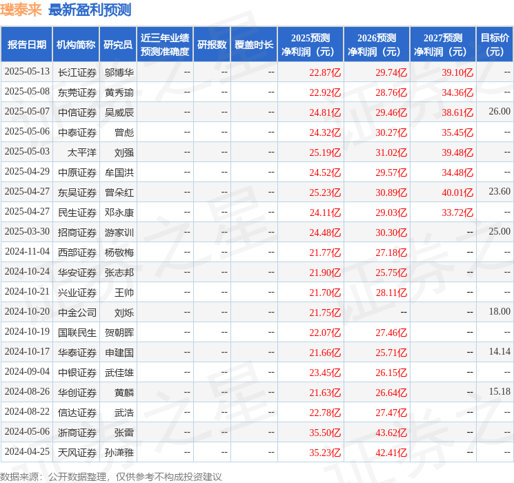 最新盈利预测明细如下:
