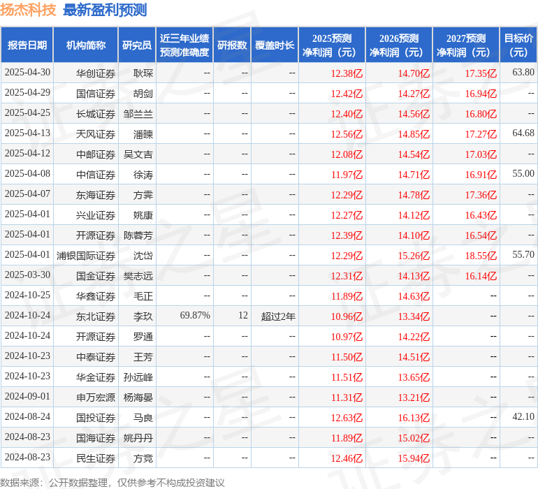 最新盈利预测明细如下: