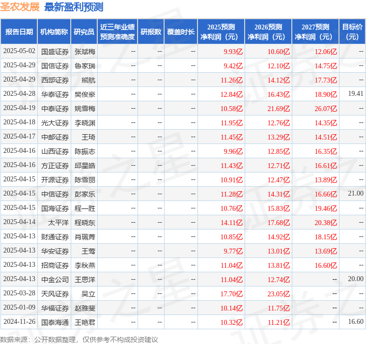 最新盈利预测明细如下: