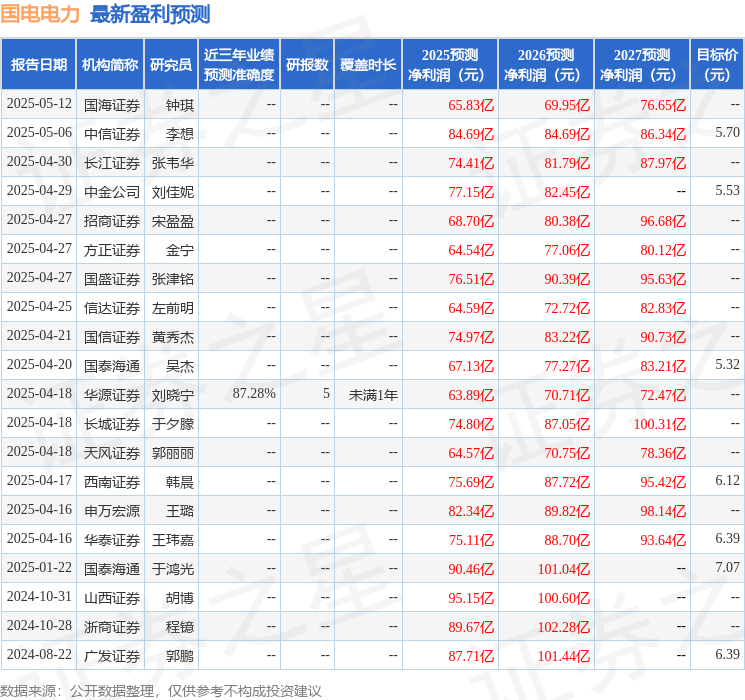 华源证券股份有限公司刘晓宁,查浩,邓思平近期对国电电力进行研究并发布了研究报告《业绩稳健略超预期 水火投产贡献增量》,给予国电电力增持评级。