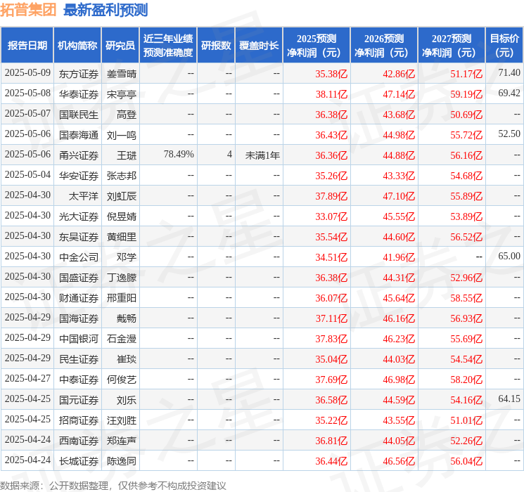 最新盈利预测明细如下: