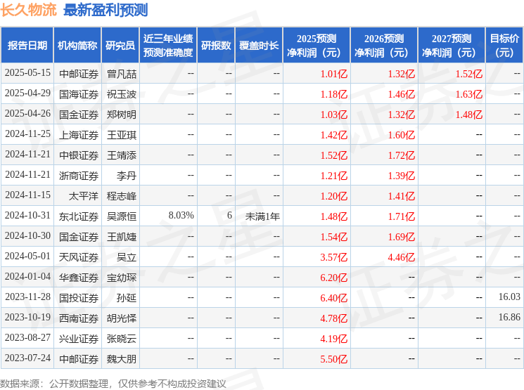 中银国际证券股份有限公司王靖添,刘国强近期对长久物流进行研究并发布了研究报告《2024年业绩稳健增长,2025年一季度净利润有所承压》,给予长久物流买入评级。