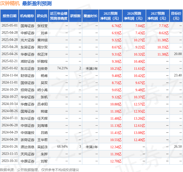最新盈利预测明细如下: