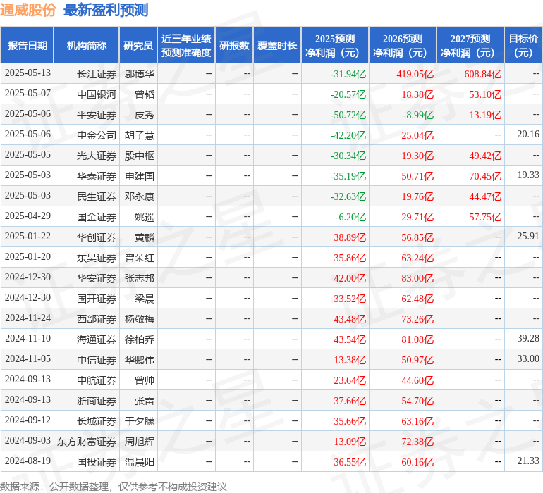 最新盈利预测明细如下: