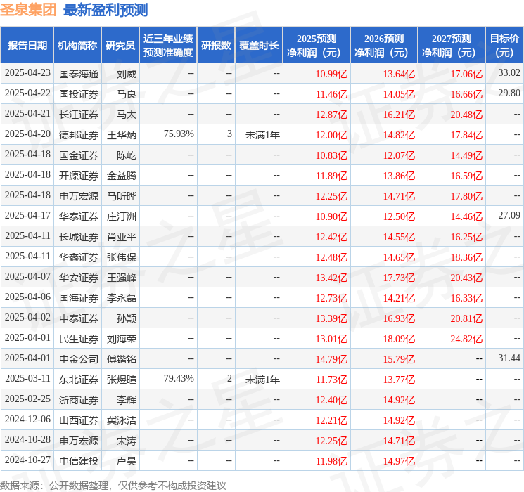 最新盈利预测明细如下: