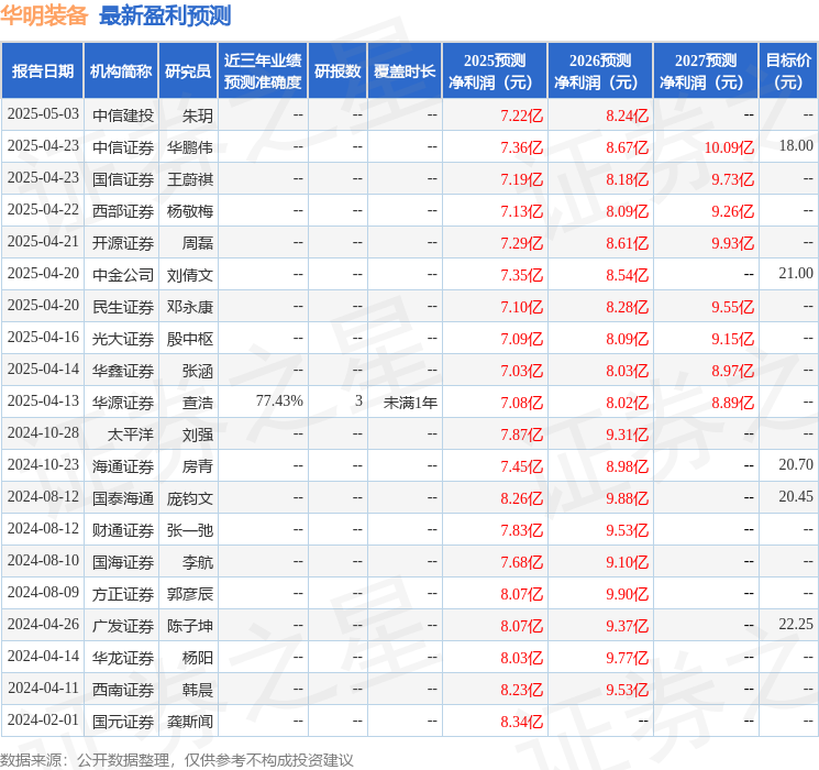 最新盈利预测明细如下: