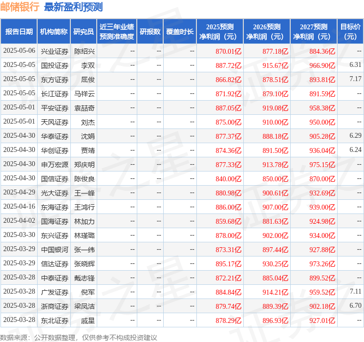 盈利预测与投资建议。由于资产端收益率下行幅度较大,拨备计提力度较强,邮储银行Q1归母净利润略低于预期。往后看,5月LPR与存款挂牌利率同步下降,息差压力将趋于平缓,年内业绩有望修复。我们相应调整XM外汇官网盈利预测,预计2025-2027年营业收入分别为35173748、4003亿元(原预测3600、3774、4019亿元),归母净利润分别为870、906、945亿元(原预测886、907、939亿元)XM外汇官网,对应同比+0.59%、+4.18%与+4.30%。预计2025-2027年末普通股每股净资产为7.86、8.29与8.73元,对应5月19日收盘价PB为0.67、0.64、0.61倍。基于1):存贷XM外汇官网同步降息缓解息差压力;2)财政部战略投资夯实公司资本实力,邮政集团增持提升市场信心;3)资产质量压力可控,未来仍能实现良好经营效益;4)当前估值处于历史较低水平,维持公司“增持”评级。