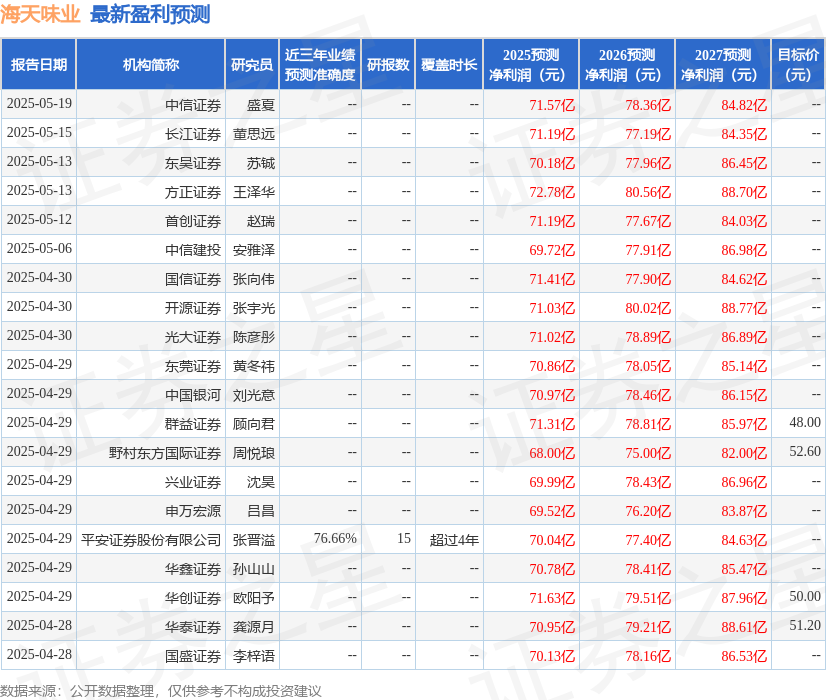 最新盈利预测明细如下:
