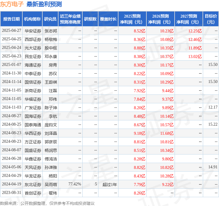 最新盈利预测明细如下: