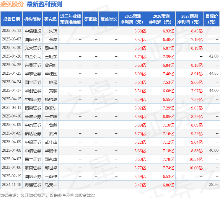 最新盈利预测明细如下: