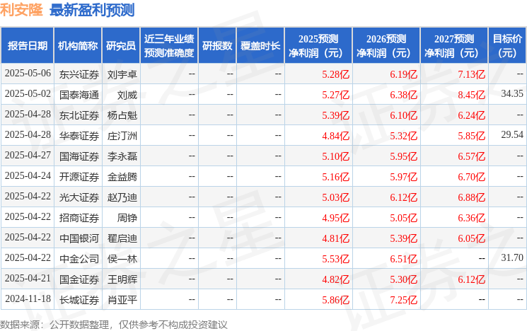 最新盈利预测明细如下:
