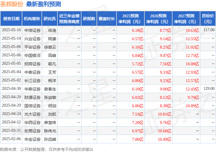 最新盈利预测明细如下: