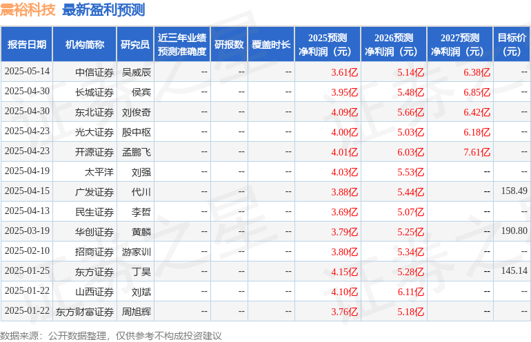 最新盈利预测明细如下: