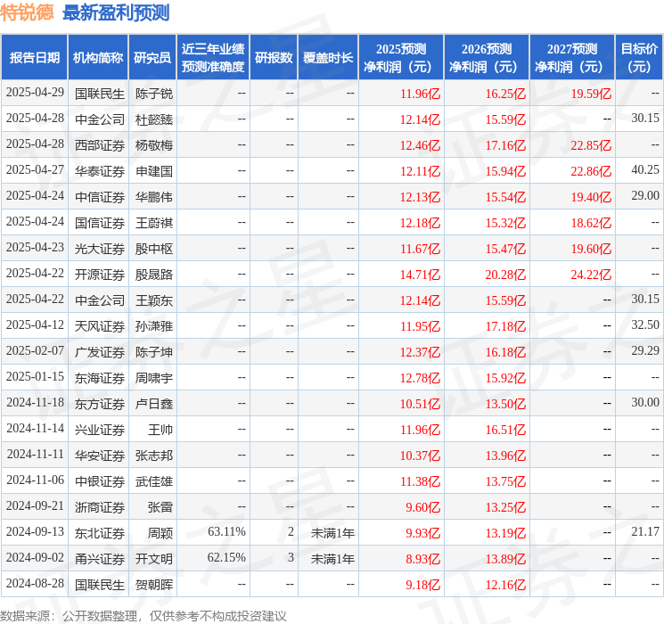最新盈利预测明细如下: