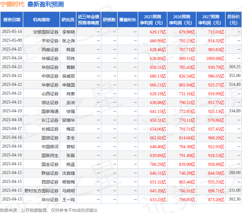 群益证券(香港)有限公司沈嘉婕近期对宁德时代进行研究并发布了研究报告《港股上市加速全球布局,积极推进重卡换电生态》,上调宁德时代目标价至330.0元,给予增持评级。